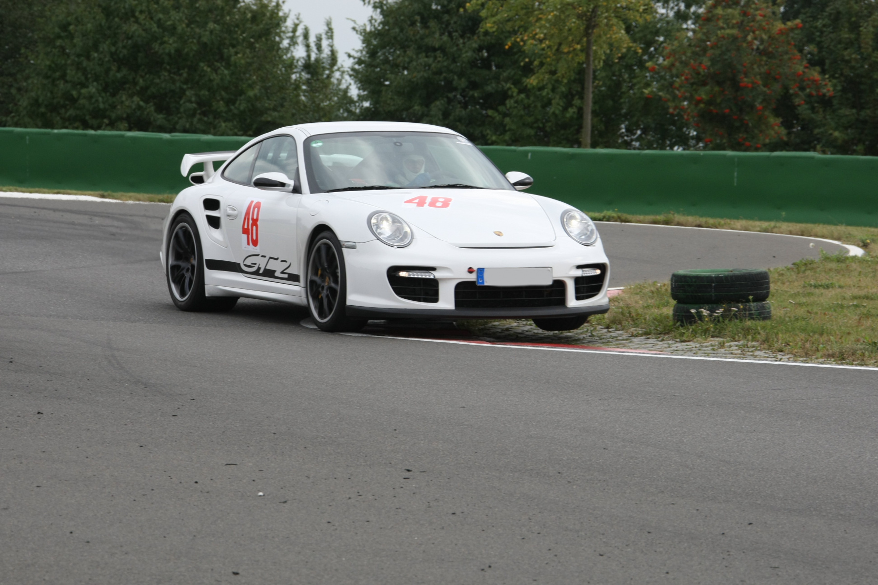 Sonntag: Schon um 7.30 Uhr geschäftiges Treiben und gute Laune – ein super Tag stand bevor! 124 Teilnehmer sorgten am frühen Morgen für ein imposantes Bild auf dem Porsche Gelände. Für die erfahrene Mannschaft des PC Osnabrück wieder eine schöne Herausforderung. Aber auch in diesem Jahr gelang es problemlos alle Fahrzeuge in ihre Gruppen einzuweisen. Es wurden wieder 4 Gruppen gebildet um 38 GT3/RS (997) und weitere 23 GT3/RS (996) sowie 19 997S, 7 Turbos, 4 GT2 (997), 1 Carrera GT, zahlreiche 996 und nicht zu vergessen die Fahrzeuge vom 911G Modell über 911S, 964, 928, Boxster bis Cayman! Sämtliche Klassen waren gut und ausgeglichen besetzt. Nach Papierabnahme und Startnummern kleben ging es unverzüglich zur Fahrerbesprechung. Supervisior Sebastian Schauer erklärte kurz die markanten Kurven und Eigenarten der Rennstrecke, nicht ohne auf die Verhaltensweise bei den Fahraktivitäten hinzuweisen. Nachdem Hero Schwarze alle Teilnehmer begrüßt und die Instruktoren Dr. Fritz Letters, Andreas Iburg und Ulli Bläute ( PC Osnabrück ), Alexander Schöbel ( PC Magdeburg ) und Horst-Dietrich Wessel ( PC Kirchen-Hausen ) vorgestellt hatte, schickte Rennleiter Carsten Spengemann pünktlich um 9.00 Uhr die erste von vier Fahrgruppen mit den fünf Instruktoren zum „Guide- Fahren“ auf die Strecke. Alle Fahrzeuge wurden zum besseren Verständnis der Instruktorenweisung wieder mit einem Sprechfunkgerät ausgestattet, denn gerade der Club Cup ist als Einsteigerserie zu sehen. Im Fahrerfeld befand sich eine große Anzahl von Club Cup Neulingen, denen mit dieser direkten Unterstützung die Suche nach der Ideallinie wesentlich erleichtert wird! Im „Freien Fahren“ wurde das Erlernte erprobt und schon war die eigene Ideallinie gefunden oder? Nach lehrreichen Vormittagsstunden stärkte man sich am köstlichen Buffet im Restaurant, Getränkeversorgung inbegriffen.