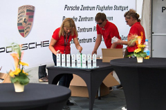 Dem aufmerksamen Beobachter im VIP-Zelt über der Boxengasse war auch nicht entgangen, dass die Mannschaft rund um Inge Reichert-Zorzi die ganzen Tage über rege zu tun hatte. Der Standplatz war wieder gut gewählt: Gleich nach dem Treppenaufgang zur überdachten Boxengasse mussten alle, ob Fahrer oder Besucher, einen Blick auf die Kollektion werfen – und durften kaufen, kaufen, kaufen. Gemeinsam mit Dorothee Wanner und Diana Prosinecki präsentierte Inge Reichert-Zorzi bewährte und neue Geschenkideen aus der PCD Kollektion wie z.B. das wunderbare Seidentuch mit den aufgedruckten Porsche Modellen. Auch werden jetzt viele Magnethalter mit unterschiedlichen Porsche Modellen so manchen Haushaltszettel oder in der Garage die Erinnerung an den nächsten Ölwechseltermin hoch halten.