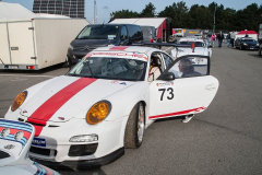 Aufgrund der großen Starterzahl wurde das Feld in drei Rennen gesplittet. Einen weiteren Doppelsieg schnappte sich einmal mehr Heinz Bert Wolters. Allerdings waren diese durchaus hart erarbeitet, zudem mit einer Portion Glück im zweiten Durchgang. Denn so etwas wie der tragische Held des Wochenendes war Klaus Horn, der mit seinem Porsche 997 GT3 R dem Seriensieger ordentlich Paroli bot. Aus dem erwarteten Duell wurde im ersten Heat jedoch nichts. Gleich in der zweiten Runde zerbröselte Horn die Antriebswelle. Von der Pole aus gestartet, fuhr Wolters überlegen zum Gesamtsieg. Ganz anders dagegen das zweite Rennen. Gleich von Beginn an übernahm Horn im schneeweißen 911er die Spitze. Wolters blieb dran, zeigte sich immer wieder groß im Rückspiegel. Vorbei kam er jedoch nicht. In Runde 14 stellte Wolters die bekannte Rangfolge der bisherigen Rennen wieder her. Horn schien sich wieder mit dem zweiten Platz abfinden zu müssen. Doch zwei Umläufe vor Schluss fehlte der Landauer plötzlich. „Das war die dritte Antriebswelle an diesem Wochenende. Eine kann ich ja noch verstehen, aber drei“, war Horn dementsprechend konsterniert. Für Horn besonders ärgerlich. Wolters bekam im Nachgang eine 30-Sekunden Strafe wegen Auslassens der Schikane beim Überholvorgang aufgebrummt. Das hätte Horn locker zum vierten Saisonsieg gereicht. „Das zweite Rennen war schon sehr spannend und es war ein enger Kampf um die Führung. Wir fuhren auf die Schikane zu und ich war schon zur Hälfte neben ihm. Er hat ein bisschen vorgezogen und ich musste mit der linken Seite komplett ins Gras. Da hätte es fast geknallt und ich bin durch die Poller durch. Ich war danach vorne. Klar, gesetzmäßig hätte ich den Platz wieder hergeben müssen. Das habe ich in dem Moment nicht getan, aber dafür bin ich auch bestraft worden“, schilderte Wolters die entscheidende Szene des Rennens aus seiner Sicht.
