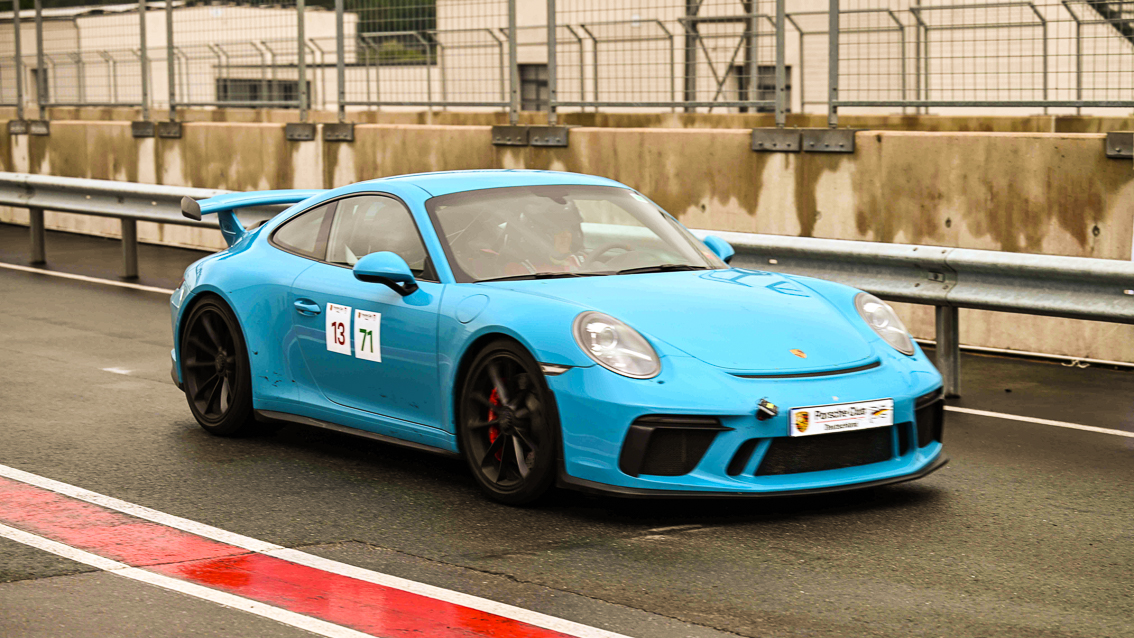 Im Fahrerlager beeindruckte die Vielfalt: Dieter Klein in einem seltenen Porsche Carrera 993 GT2, Silvia Maier als einzige Frau mit einem 992 GT3, dazu mehrere 911 GT3 RS, darunter der von Andreas Distler, dessen Sound Gänsehaut verursachte.