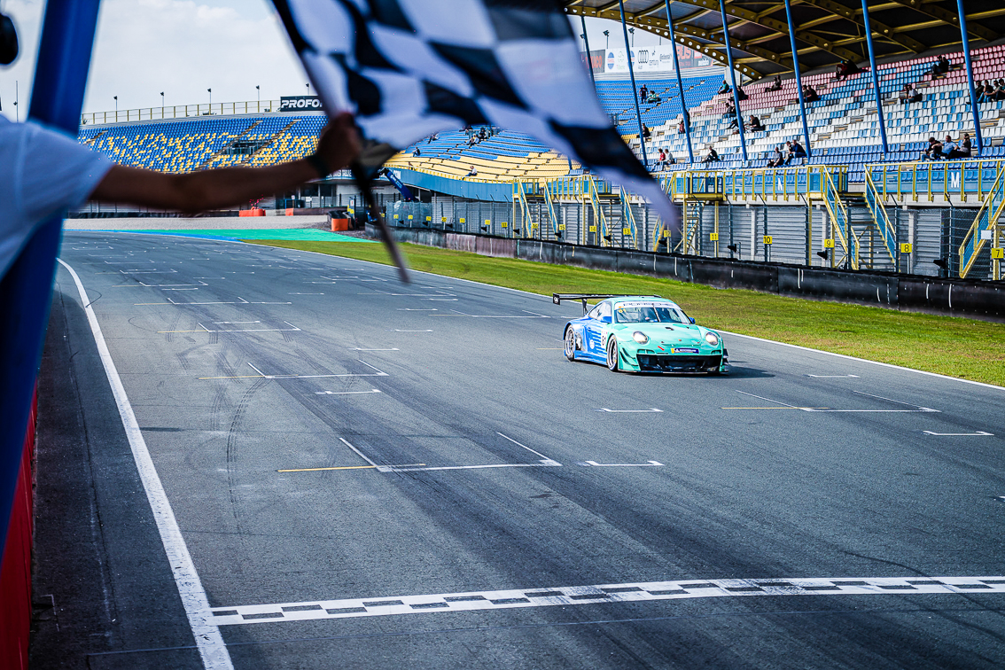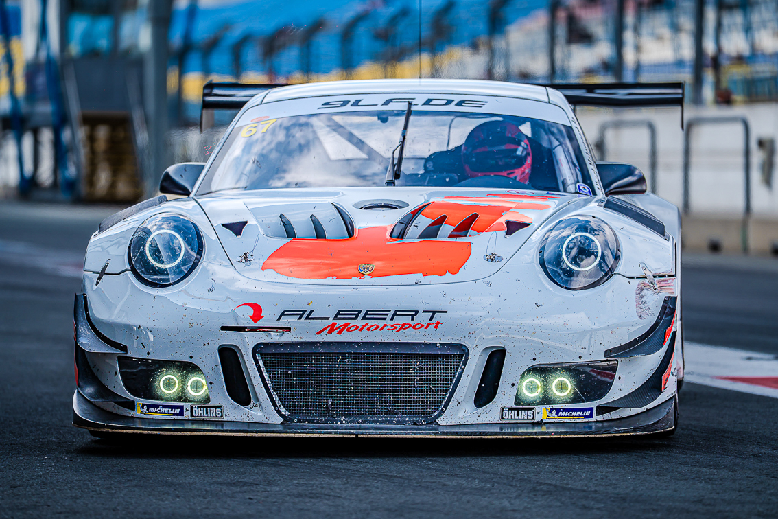 Für Läuferts war das Wochenende von Überraschungen geprägt. Statt im vorgesehenen 991 GT3 Cup saß er im Ersatzwagen von Teamchef Jürgen Albert, einem Porsche 991 GT3 R – und nutzte die Chance perfekt. Schon im Qualifying stellte er das Auto in die zweite Startreihe. Im Rennen knackte er zuerst Joachim Bölting (992 GT3 Cup), kurz darauf musste sich auch Becker hinter Läuferts einsortieren. Der führende Heinz-Bert Wolters (991 GT3 R) verlor durch eine 25-Sekunden-Strafe wegen Tracklimits den Sieg, so dass Läuferts am Ende jubeln durfte. Hinter Becker landete Wolters noch auf Rang drei. „Ich musste aufpassen, da ich schon eine Verwarnung wegen Tracklimits bekommen hatte und natürlich keine Strafsekunden kassieren wollte. Das war am Ende auch entscheidend“, berichtete Läuferts. Vierter wurde Jürgen Albert im 991 GT3 R. „Der erste Lauf begann sehr gut. Direkt nach dem Start konnte ich auf Platz zwei vorfahren und den Anschluss zur Spitze halten. Doch zwei kleinere Fahrfehler warfen mich zurück, einmal durch den Kies, jeweils verursacht durch zu hohe Kurvengeschwindigkeit und zu wenig Grip“, so der Vorjahressieger.