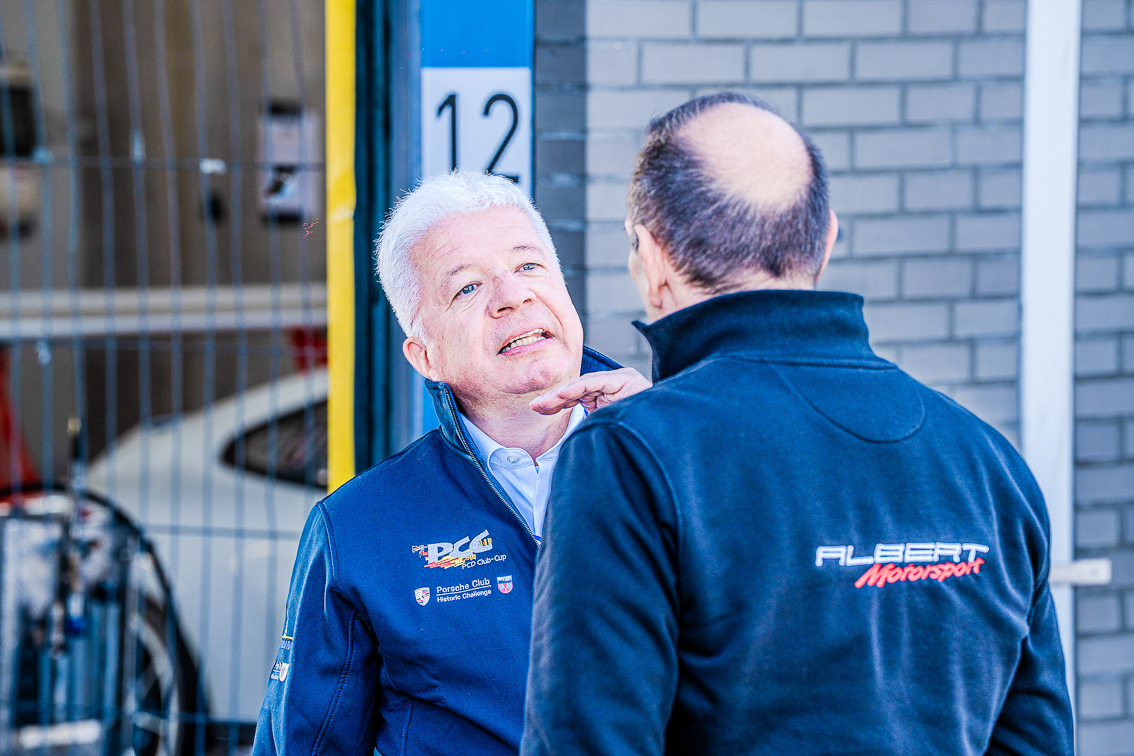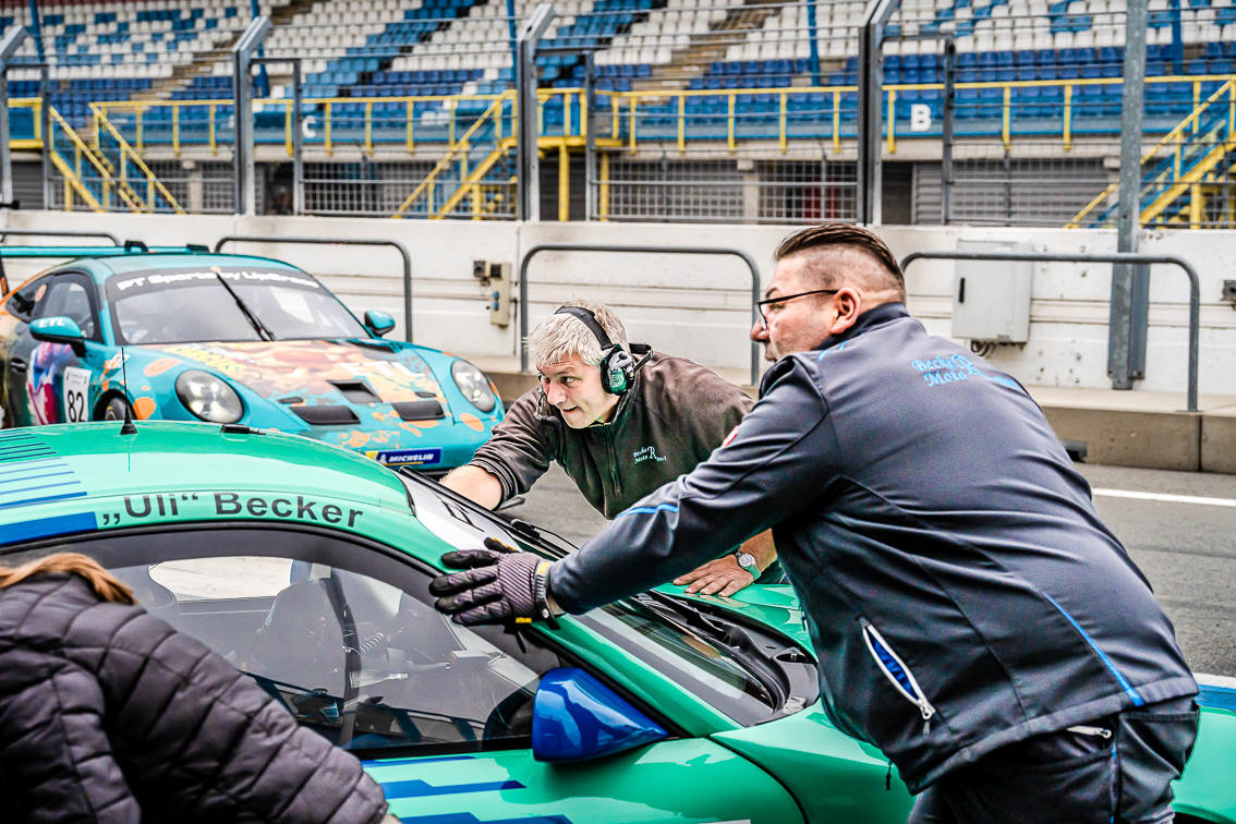Für Läuferts war das Wochenende von Überraschungen geprägt. Statt im vorgesehenen 991 GT3 Cup saß er im Ersatzwagen von Teamchef Jürgen Albert, einem Porsche 991 GT3 R – und nutzte die Chance perfekt. Schon im Qualifying stellte er das Auto in die zweite Startreihe. Im Rennen knackte er zuerst Joachim Bölting (992 GT3 Cup), kurz darauf musste sich auch Becker hinter Läuferts einsortieren. Der führende Heinz-Bert Wolters (991 GT3 R) verlor durch eine 25-Sekunden-Strafe wegen Tracklimits den Sieg, so dass Läuferts am Ende jubeln durfte. Hinter Becker landete Wolters noch auf Rang drei. „Ich musste aufpassen, da ich schon eine Verwarnung wegen Tracklimits bekommen hatte und natürlich keine Strafsekunden kassieren wollte. Das war am Ende auch entscheidend“, berichtete Läuferts. Vierter wurde Jürgen Albert im 991 GT3 R. „Der erste Lauf begann sehr gut. Direkt nach dem Start konnte ich auf Platz zwei vorfahren und den Anschluss zur Spitze halten. Doch zwei kleinere Fahrfehler warfen mich zurück, einmal durch den Kies, jeweils verursacht durch zu hohe Kurvengeschwindigkeit und zu wenig Grip“, so der Vorjahressieger.