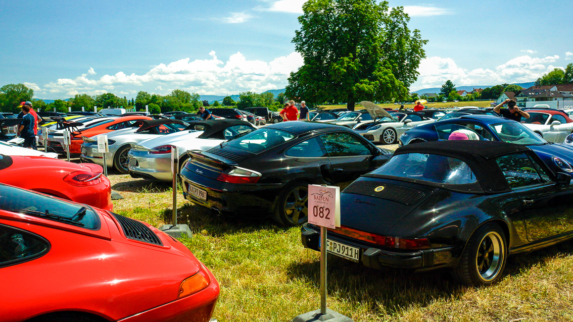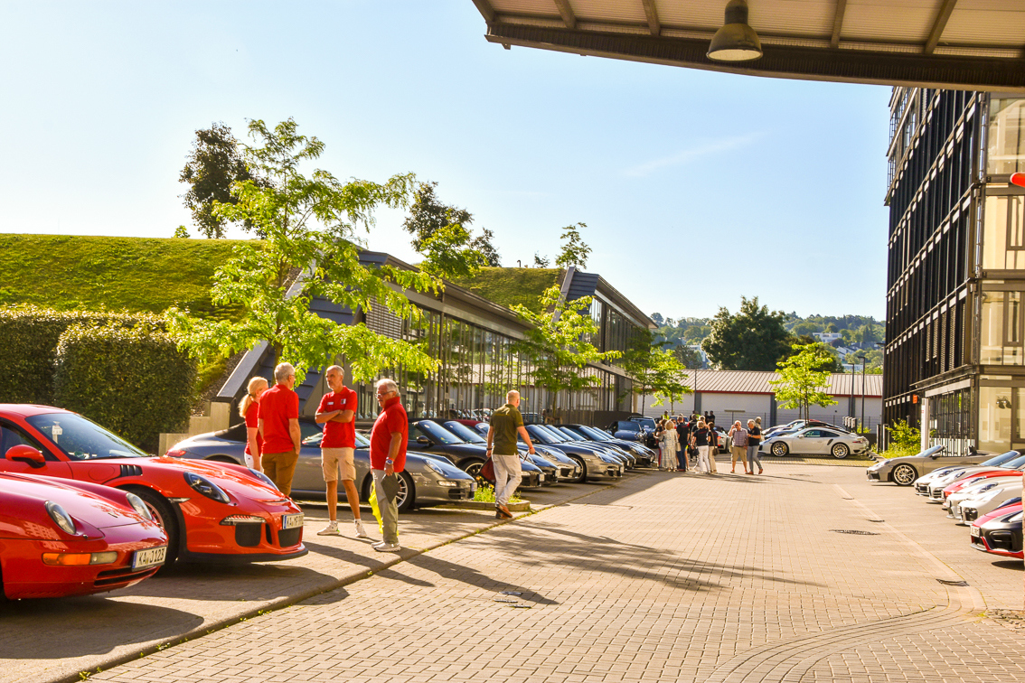 Über 200 Porsche Enthusiasten strahlten unter blauen Himmel mit der Sonne um die Wette.  Die Wiedersehensfreude war riesig und der rege Austausch sehr herzlich.