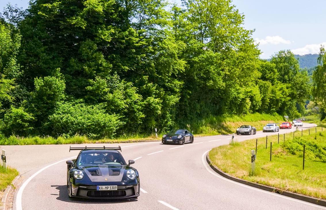 Der Auftakt erfolgte im stilvollen Ambiente des TAWA YAMA mit Begrüßung der einzelnen Clubs, Frühstück und Fahrerbesprechung. Ein Gruppenfoto im Freien durfte als Erinnerung nicht fehlen. Voller Vorfreude starteten die Konvois – geordnet nach Baureihen, Baujahren, Farben und Besonderheiten – in kleinen Gruppen zur Ausfahrt durch den Schwarzwald. Die kurvenreiche Strecke bot beeindruckende Ausblicke und ein intensives Fahrerlebnis – alles was das Porsche Herz begehrt.