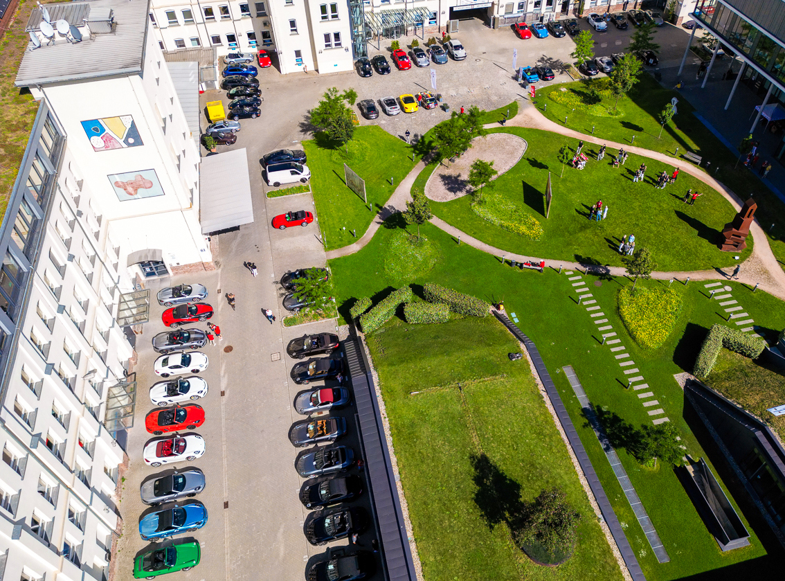 Gastgeber des diesjährigen Treffens am 31. Mai 2025 war der Porsche Club Baden. Unter dem Motto „Feste feiern und Gutes tun“ empfingen die PC Badener ihre Gäste bestens gelaunt mit schwenkenden Porsche Fahnen auf dem Raumfabrik-Campus in Karlsruhe-Durlach. Das Gelände bot mit seiner modernen Architektur, begrünten Innenhöfen und großzügigen Flächen einen idealen Rahmen.