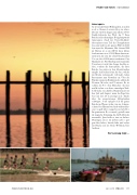 Sie ist in jeder Kunst-Bildergalerie, in jedem noch so kleinen Souvenir Shop zu sehen. Die mit 1.200 m längste und älteste (1850) Teakholzbrücke der Welt, die U Bein Brücke in der ehemaligen Königshauptstadt Amarapura (Stadt der Unsterblichkeit) überspannt einen Teil des Taungthaman Sees und steht in der ganzen Welt als DAS Synonym für Myanmar. Mit diesem Bild im Herzen ist es ein MUSS, diese kleine Stadt mit nur circa 25.000 Einwohnern an- zusteuern, die eine der schnell wachsenden Vororte der elf Kilometer entfernten City Mandalay ist. Für Gläubige und staunende Touristen ist nicht ihre Länge das Beson- dere, sondern die Atmosphäre, die diese Brücke, besonders in den Abendstunden umgibt. Auf beiden Seiten des Sees, welche die Brücke miteinander verbindet, laden Restaurants zum Verweilen ein. Über die Planken spazieren Einheimische, zahlreiche Nonnen, Mönche und Touristen. Es ist schwer, ein Foto ohne Menschen oder nur mit Mönchen von dieser einmaligen Teak- holzbrücke zu schießen. Hauptreisezeit ist hier Juli und August, wenn der Pegel des Sees um fast 28 m ansteigt und oftmals über die ausgetretenen Holzplanken schwappt. Sonst spiegelt sich die ganze Brücke im Wasser wider, wie ein Scheren- schnitt. Der Himmel wechselt währenddes- sen von gelb über orange bis ins tiefe Rot. Im gemieteten Boot sitzend, genießt man die magische Stimmung, die die Holzbrücke ausstrahlt. Jetzt heißt es inne zu halten. Diejenigen, die es im Leben nicht so gut getroffen haben, betteln links und rechts der Brücke um ein Stück Wohlstand der Anderen.