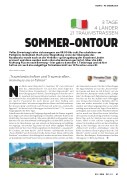 der Marmolada erwartet. Mit der Schluss-Etappe des Tages befuhren wir nun den „Passo Fedaia“ bis Canazei und dann ins „Val di Fassa“, um von dort über den „Karerpass“ wieder auf die „richtige Seite“ des Berges nach Welschnofen zu gelangen. Von hier aus war die Auffahrt nach Obereggen vom Vortag schon bekannt. Nachdem die Por- sches nun wieder unversehrt in der Tiefgarage standen, war relaxen angesagt, denn es war schon mächtig warm während des Tages. Dann hieß es auf Etappen auch schon wieder Abschied nehmen und so wurde am Abend bei einem Gala-Diner der Gaumen nochmal richtig verwöhnt. Sonntag, letzter Tag, und der Abschied von einem exzel- lenten Hotel in sehr schöner Umgebung fiel schwer! Im Anschluss suchten wir den schnellsten Weg in den Vinschgau, um von dort noch das „Stilfser Joch“ und den „Umbrailpass“ unter die Räder zu nehmen. Danach ging es über das „Val Müstair“ wieder zurück in den Vinschgau und über den „Reschenpass, Finstermünzpass und den Arlbergpass“ in Richtung Heimat. n