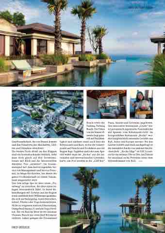 Pizza, Snacks und Getränke angeboten. Das innovative Restaurant „Crudo“ bie- tet peruanisch-japanische Fusionsküche mit Speisen vom Robatayaki-Grill. Im holzgetäfelten Restaurant „Rocka“ wer- den hauptsächlich saisonale Gerichte aus Bali, Asien und Europa serviert. Bei den Gästen beliebt und stark nachgefragt ist die interaktive Küche von und mit den Kü- chenchefs. „Rocka Edge“ ist DIE Locati- on für ein intimes Tête-à-Tête, ein Dinner für maximal sechs Personen unter dem Sternenhimmel von Bali. >>>